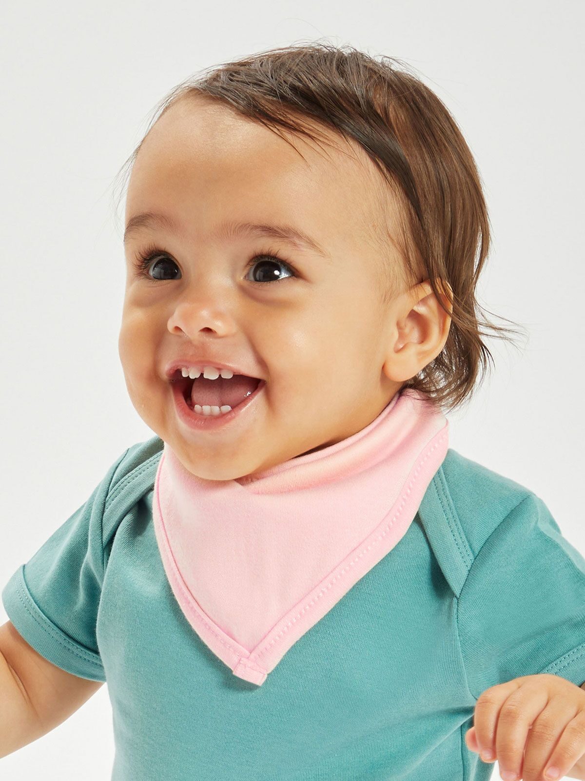 100% cotone. Bavaglino reversibile. Colore unico da un lato, due colori a contrasto dall'altro. Due bottoni a pressione sul lato posteriore del collo, posizionati sul bordo per mantenere la forma. Etichetta strappabile.