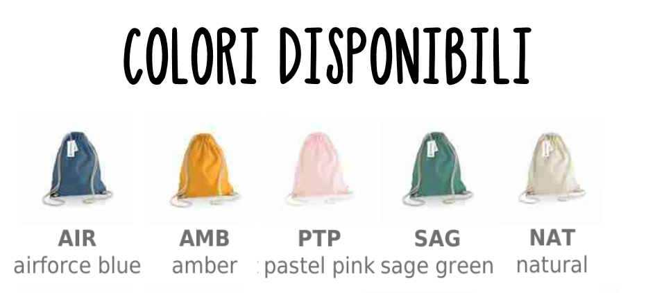 Sacca zaino Personalizzato con nome 100% Cotone Bio